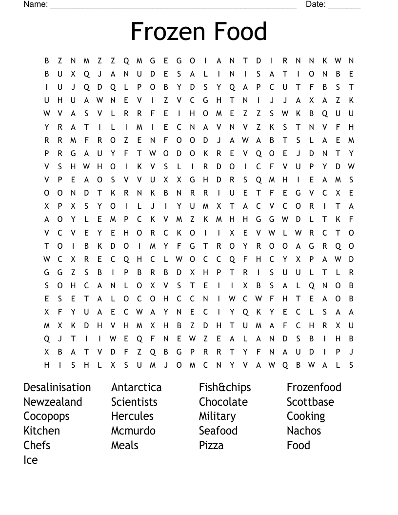 Frozen Food Word Search WordMint