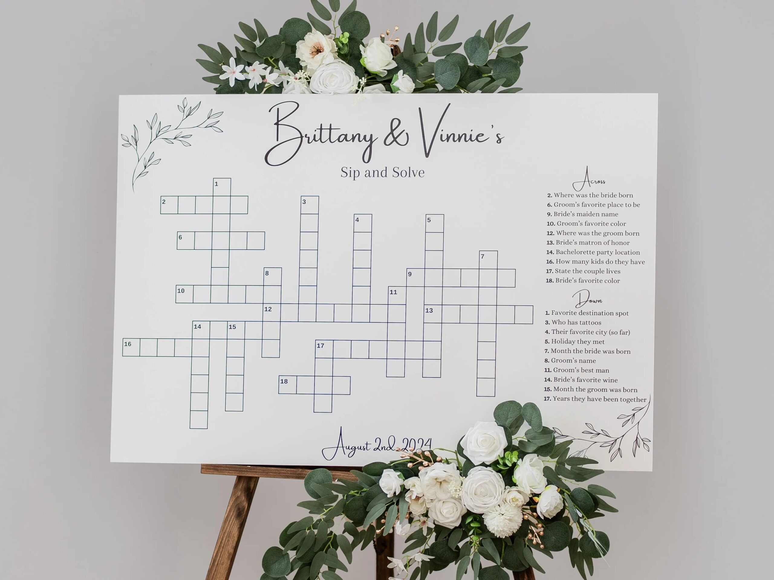 Amazon Sip And Solve Wedding Sign Printed Custom Extra Large Wedding Crossword Puzzle Boho Wedding Game Crosswords Wedding Entertainment 24 In X 18 In Dry Erase Home Kitchen