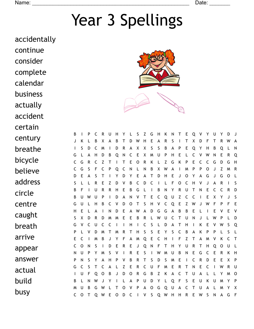 Year 3 Spellings Word Search WordMint
