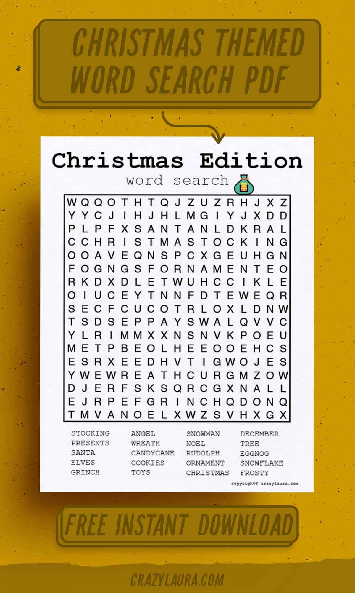 Free Christmas Word Search Printable PDF Game Sheets Crazy Laura