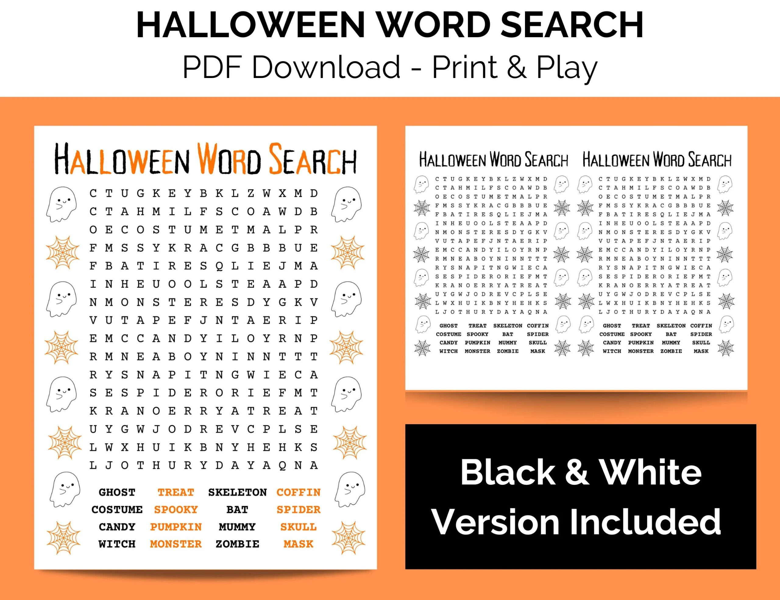 Halloween Word Search For Kids Printable PDF Black White Etsy