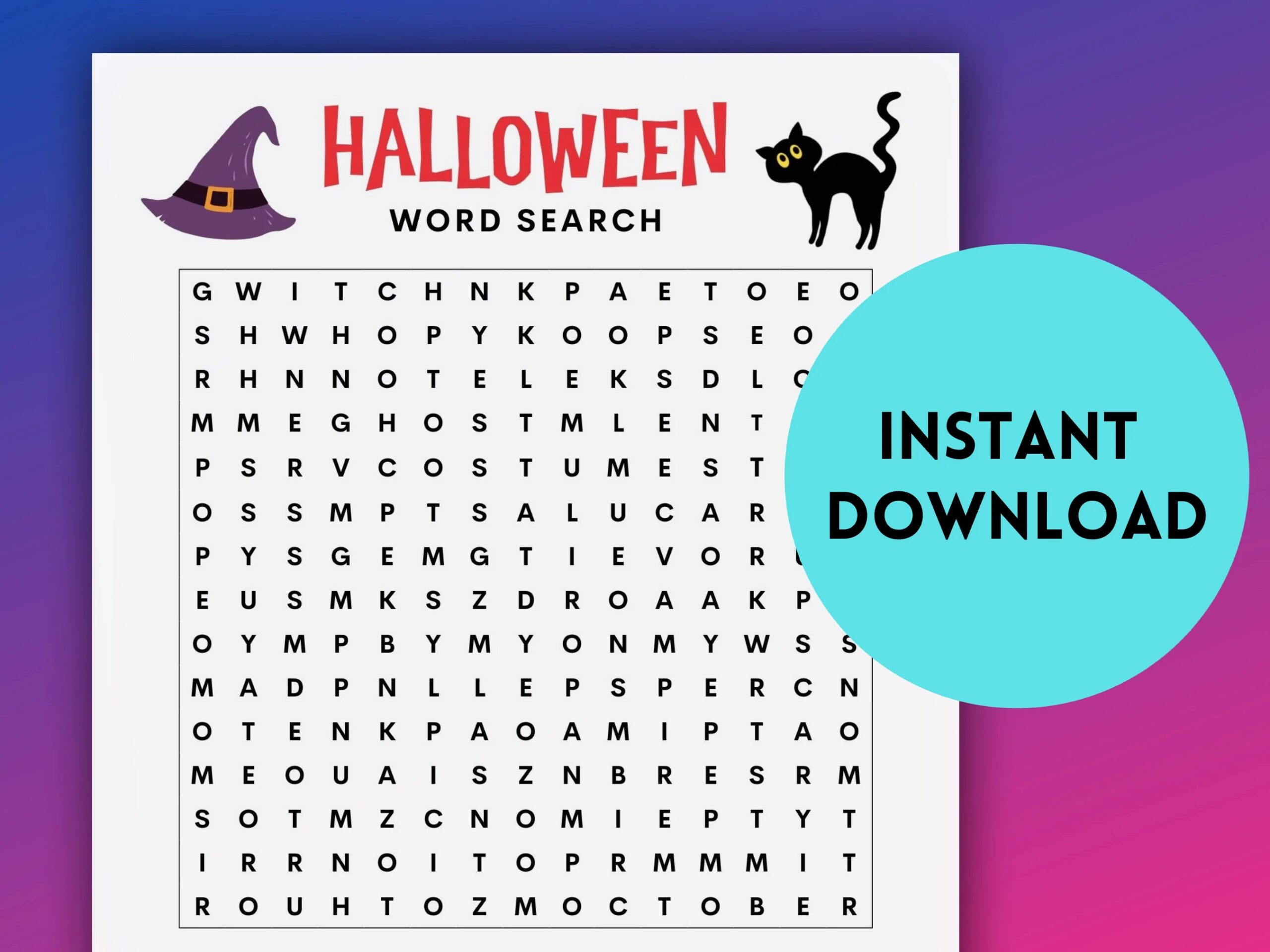 Halloween Word Search Instant Download Printable Activity Etsy