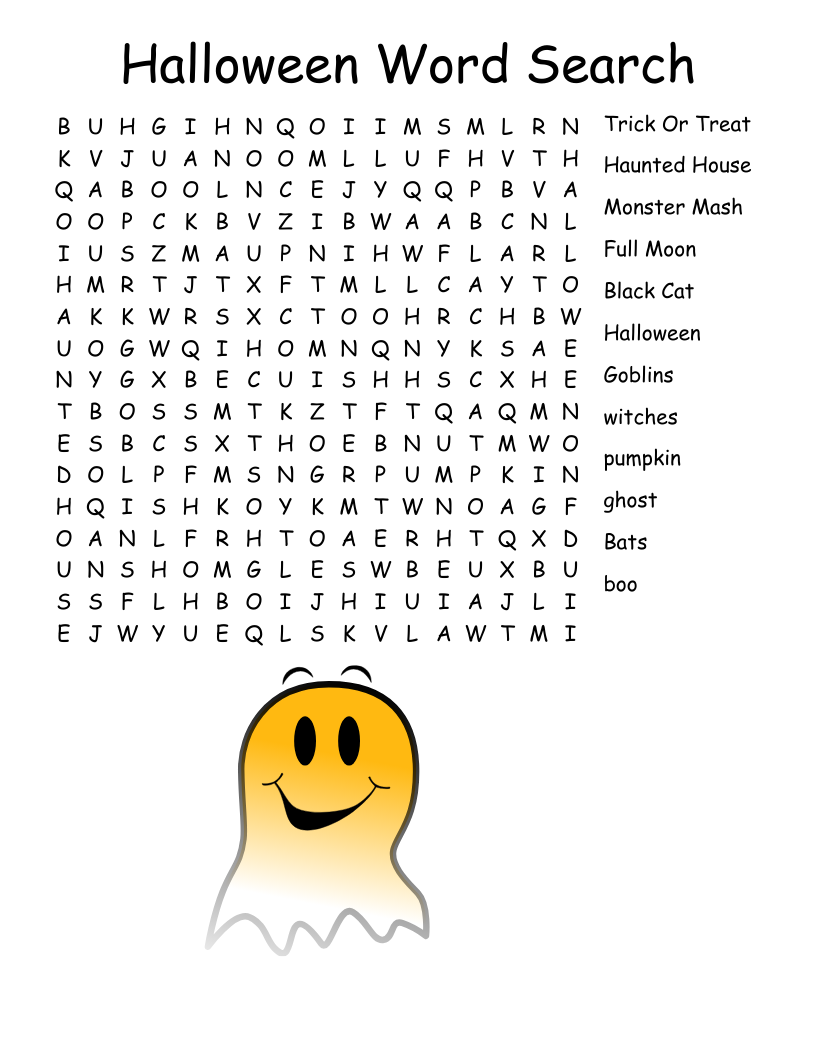 Halloween Printable Word Search Puzzles Free