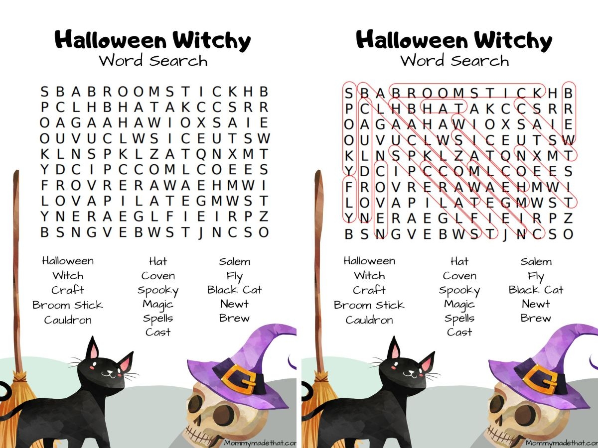 These Halloween word search puzzles feature a variety of themed words such as ghost, pumpkin, witch, and candy. The puzzles come in different difficulty levels, making them suitable for all ages. Kids can enjoy searching for words while adults can challenge themselves with more complex puzzles.
