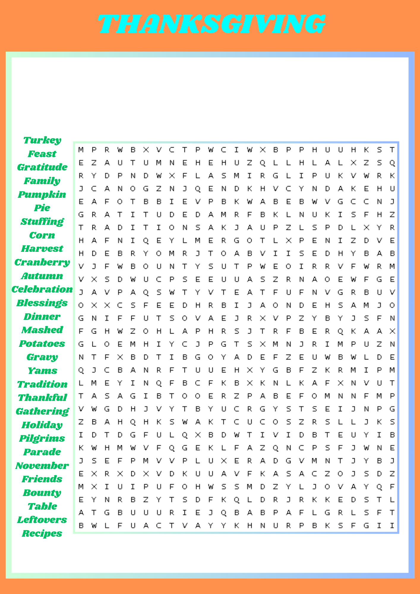 Thanksgiving Word Search WordMint