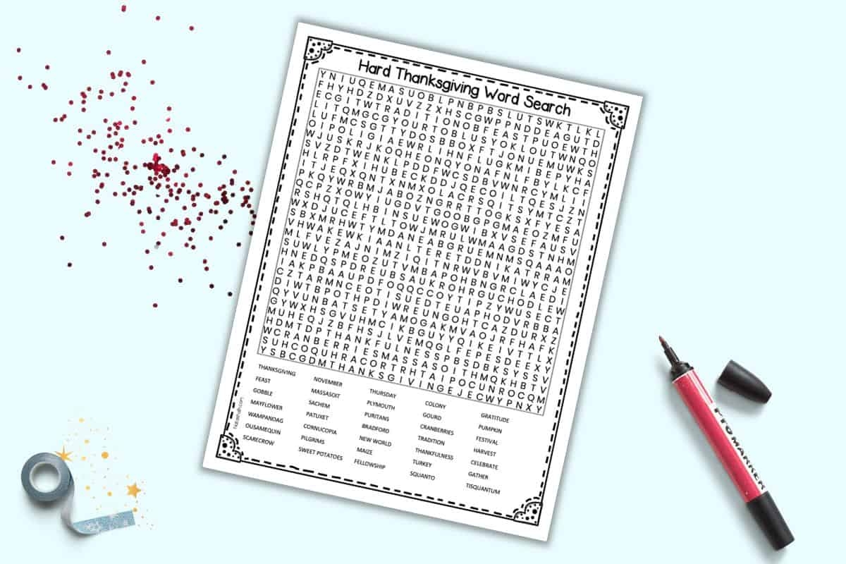 Thanksgiving Word Search Hard Printable The Artisan Life
