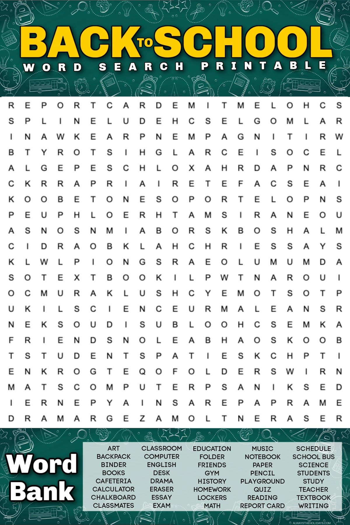 Free Back To School Word Search Printable With Answer Key