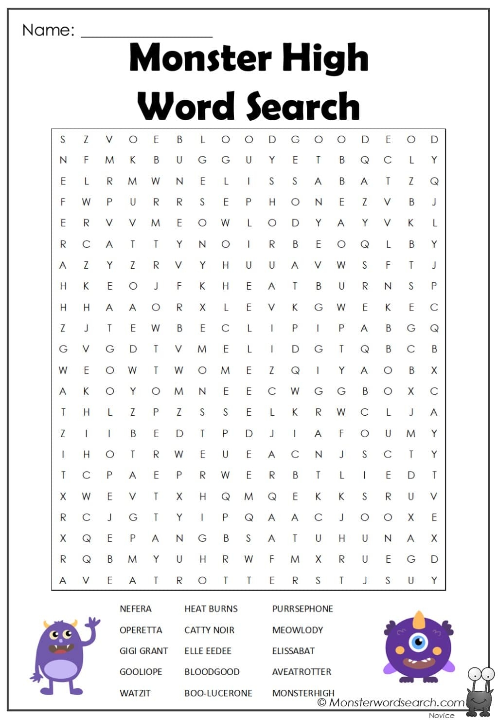 Monster High Word Search Monster Word Search