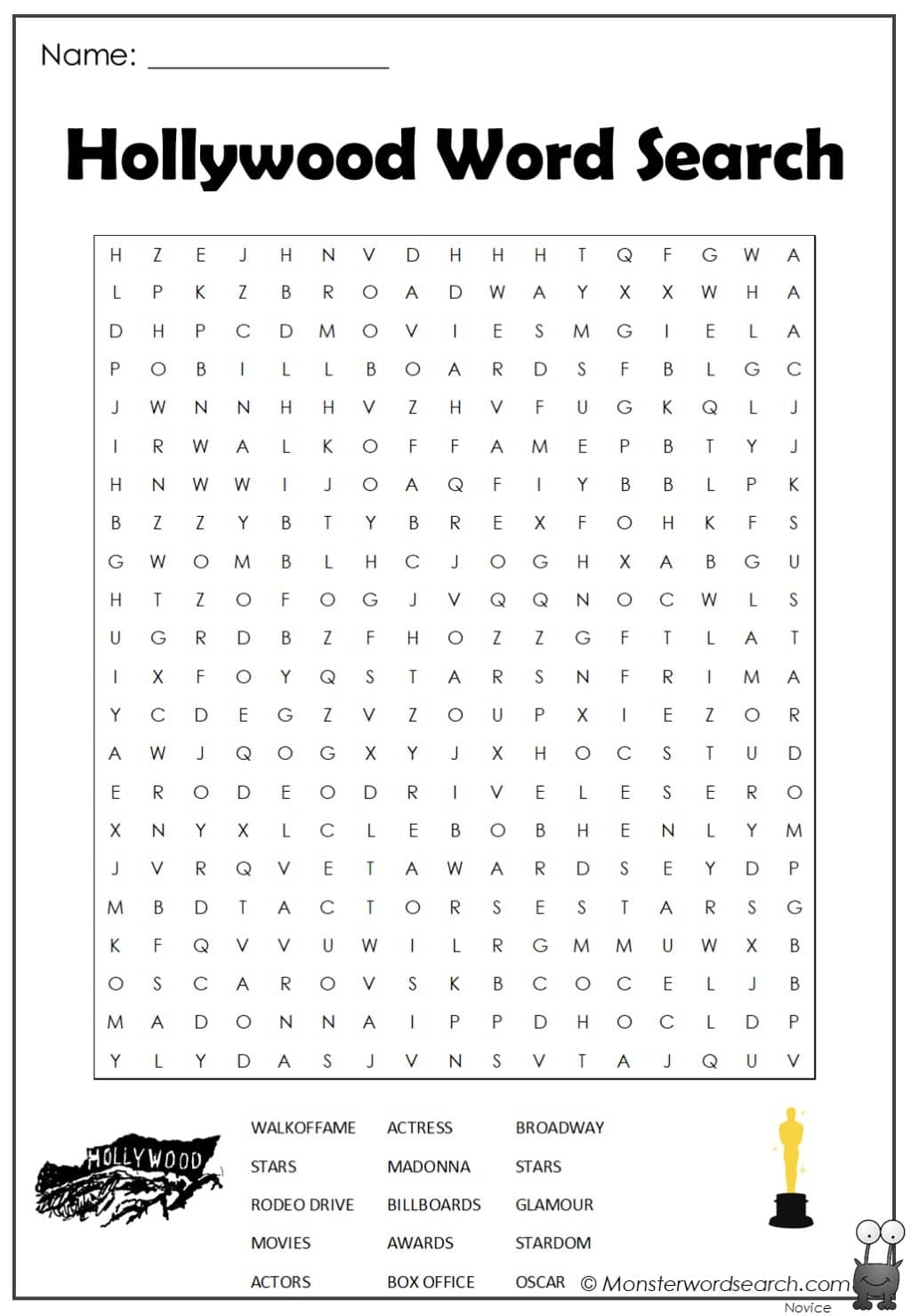 Hollywood Word Search Monster Word Search