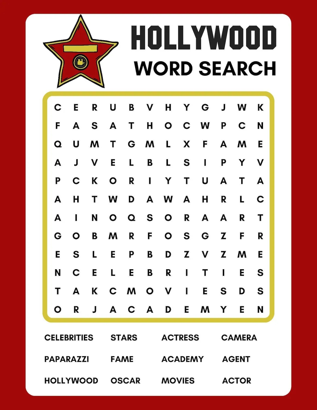 Love solving puzzles and testing your knowledge of Hollywood movies and actors? Look no further! Our Hollywood Word Search Printable is here to challenge your brain and entertain you for hours on end.