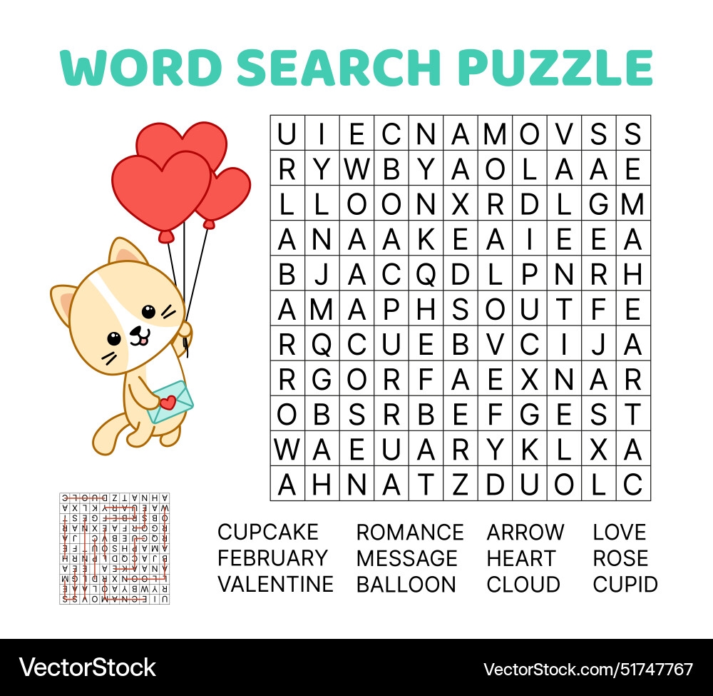 Valentine s Day Word Search Puzzle For Kids Vector Image