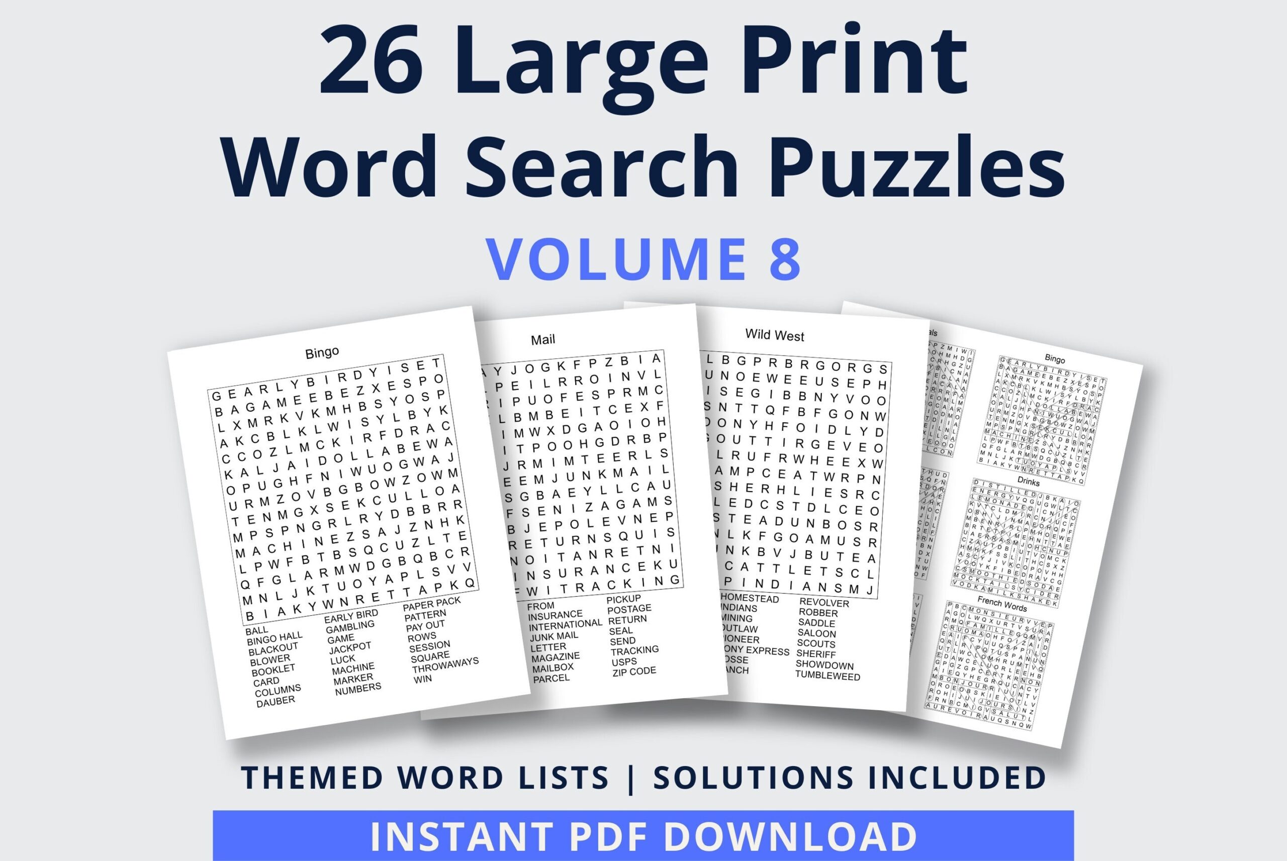 Word Search Printable 26 Word Search Puzzles For Adults Large Print Printable Games Digital Download Vol 8 Etsy