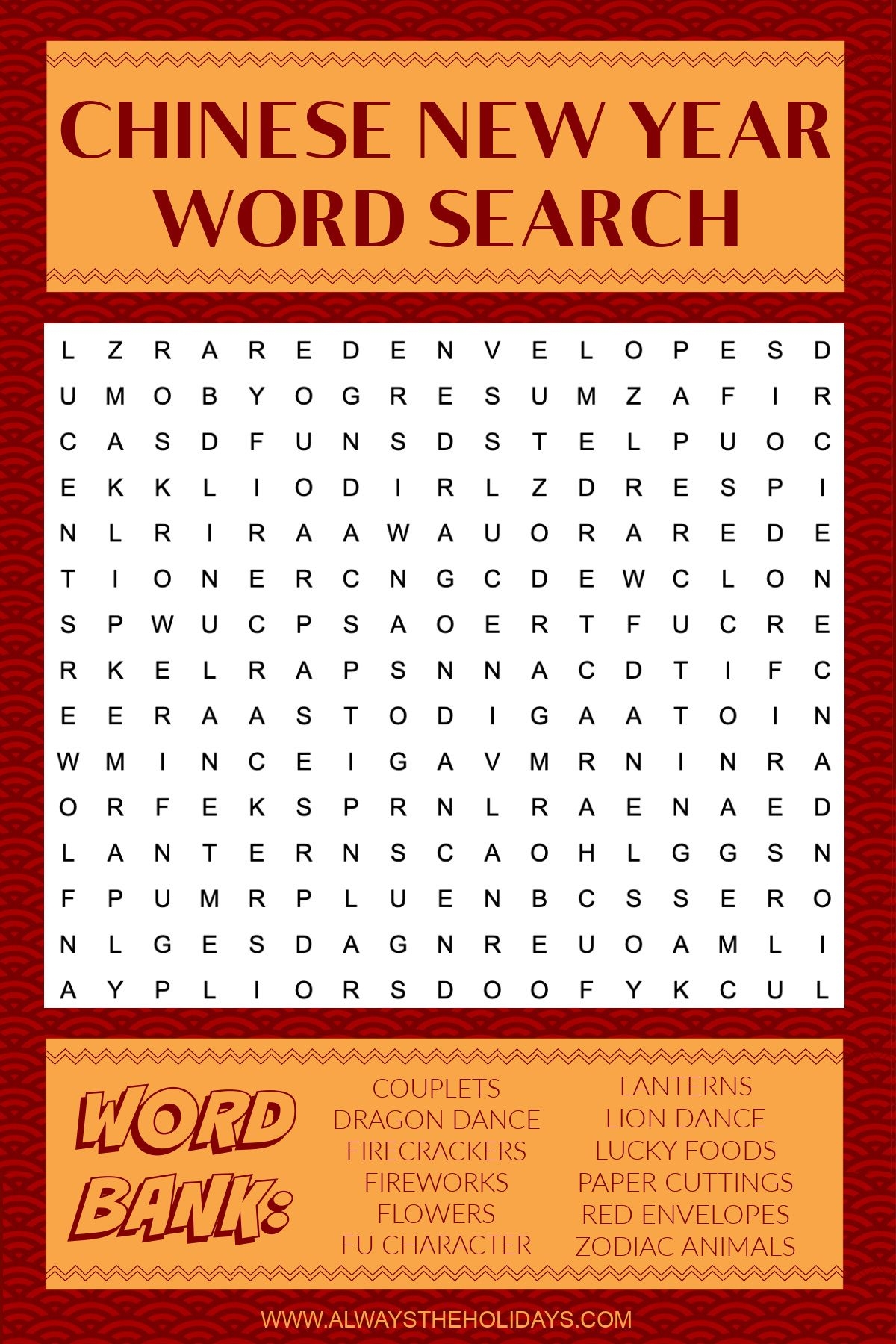 Discover Chinese New Year Fun With Free Printable Wordsearch
