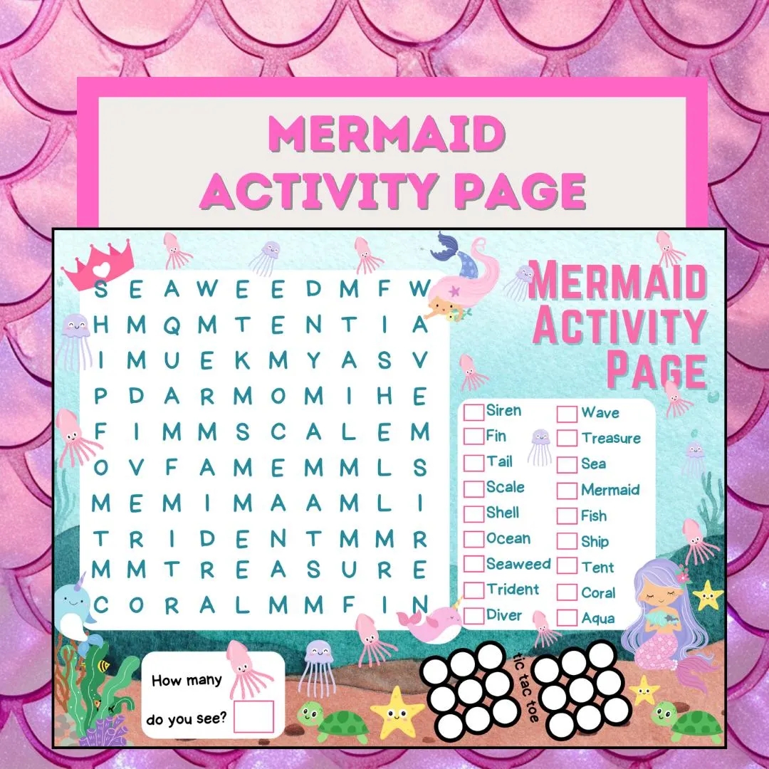 This engaging word search features a variety of mermaid-themed words that will challenge your child’s vocabulary and spelling skills while sparking their imagination. It’s the perfect way to make learning feel like play!
