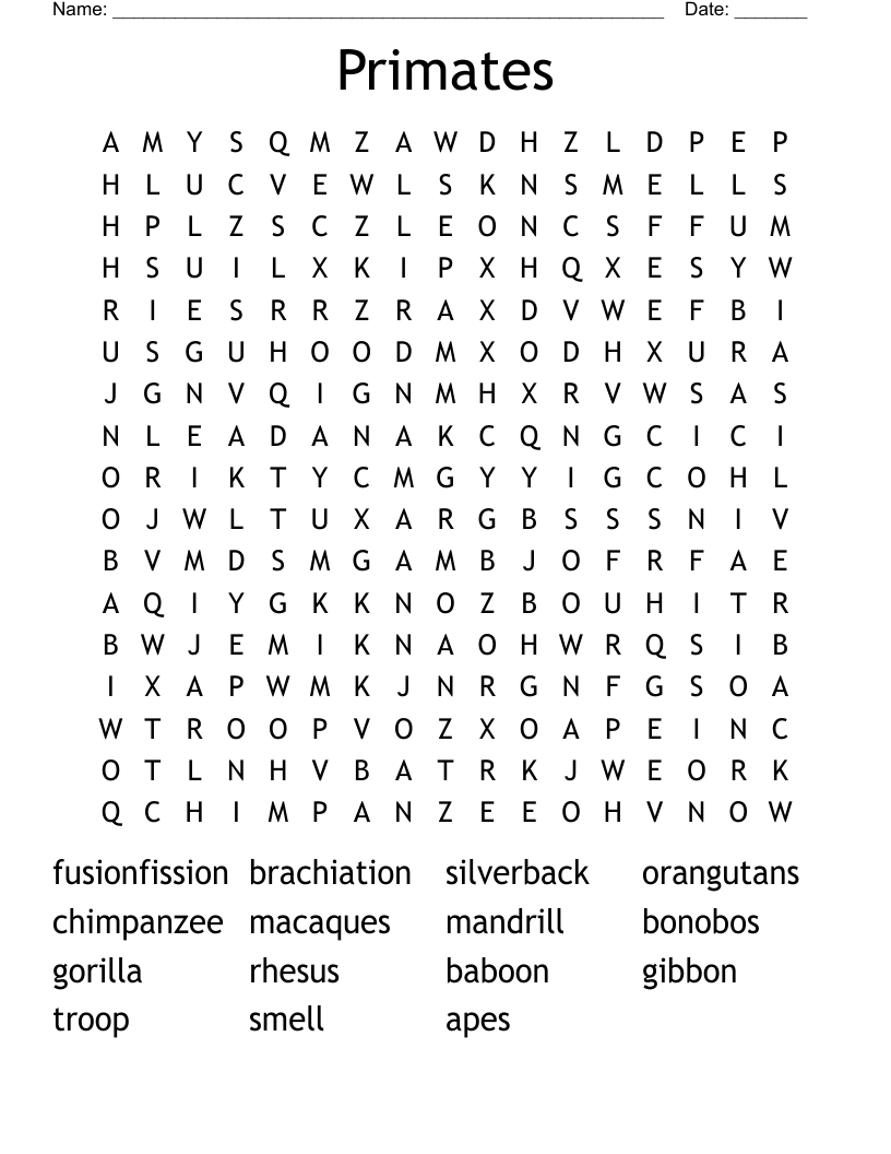 Monkeys word search printables are a great way to challenge your mind while also learning more about these amazing animals. Whether you’re a fan of chimpanzees, gorillas, or orangutans, there’s a word search out there for you. Simply print out the puzzle, grab a pencil, and get ready to search for words related to monkeys!