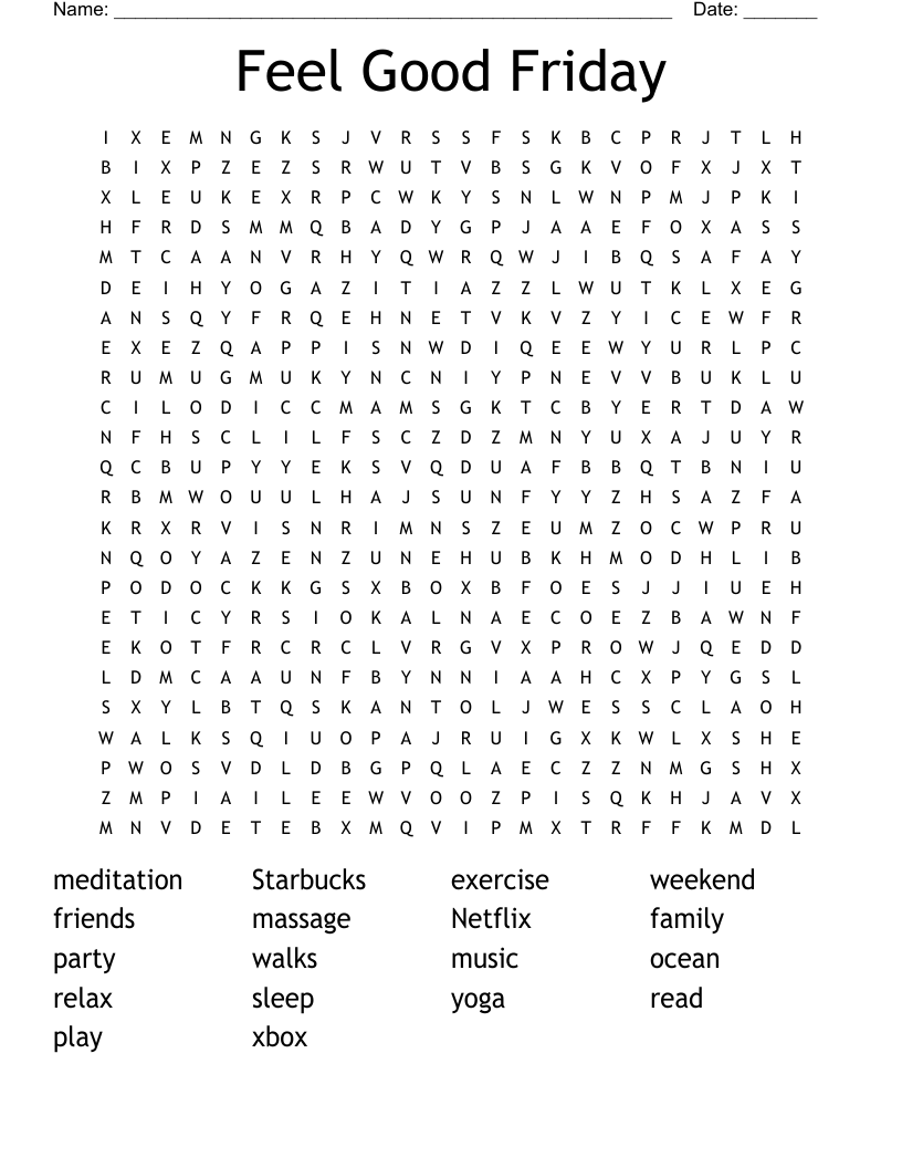 Feel Good Friday Word Search WordMint