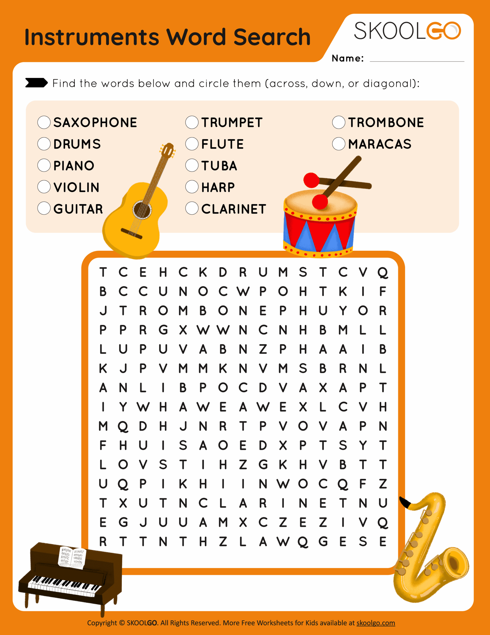 Instruments Word Search Free Game For Kids SKOOLGO