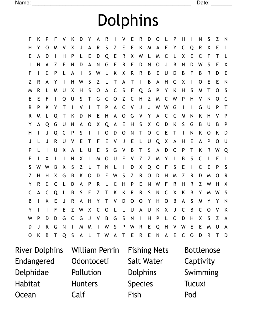 Names Of Dolphins Word Search Printable