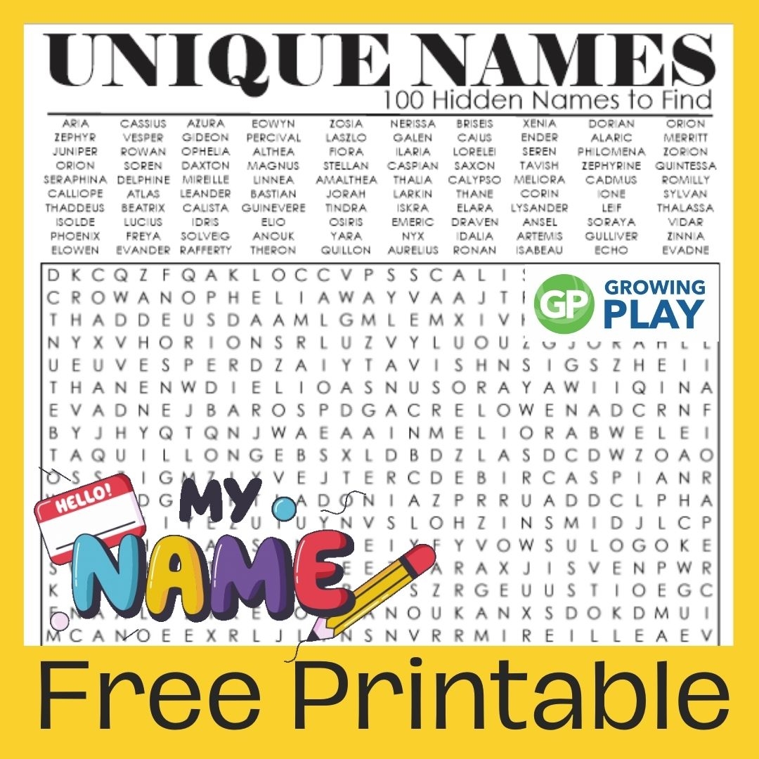 Unique Names Word Search Free Printable Growing Play