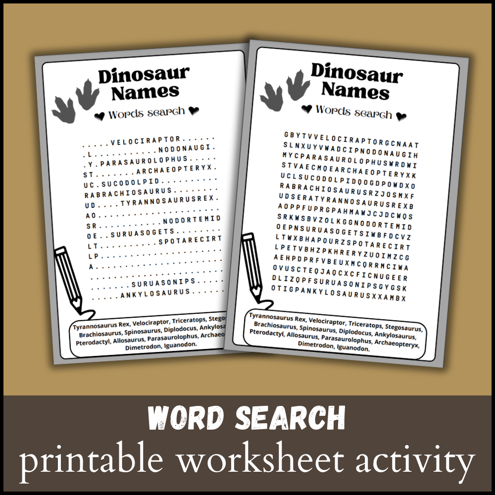 dinosaur names word search puzzle worksheet activity made by teachers