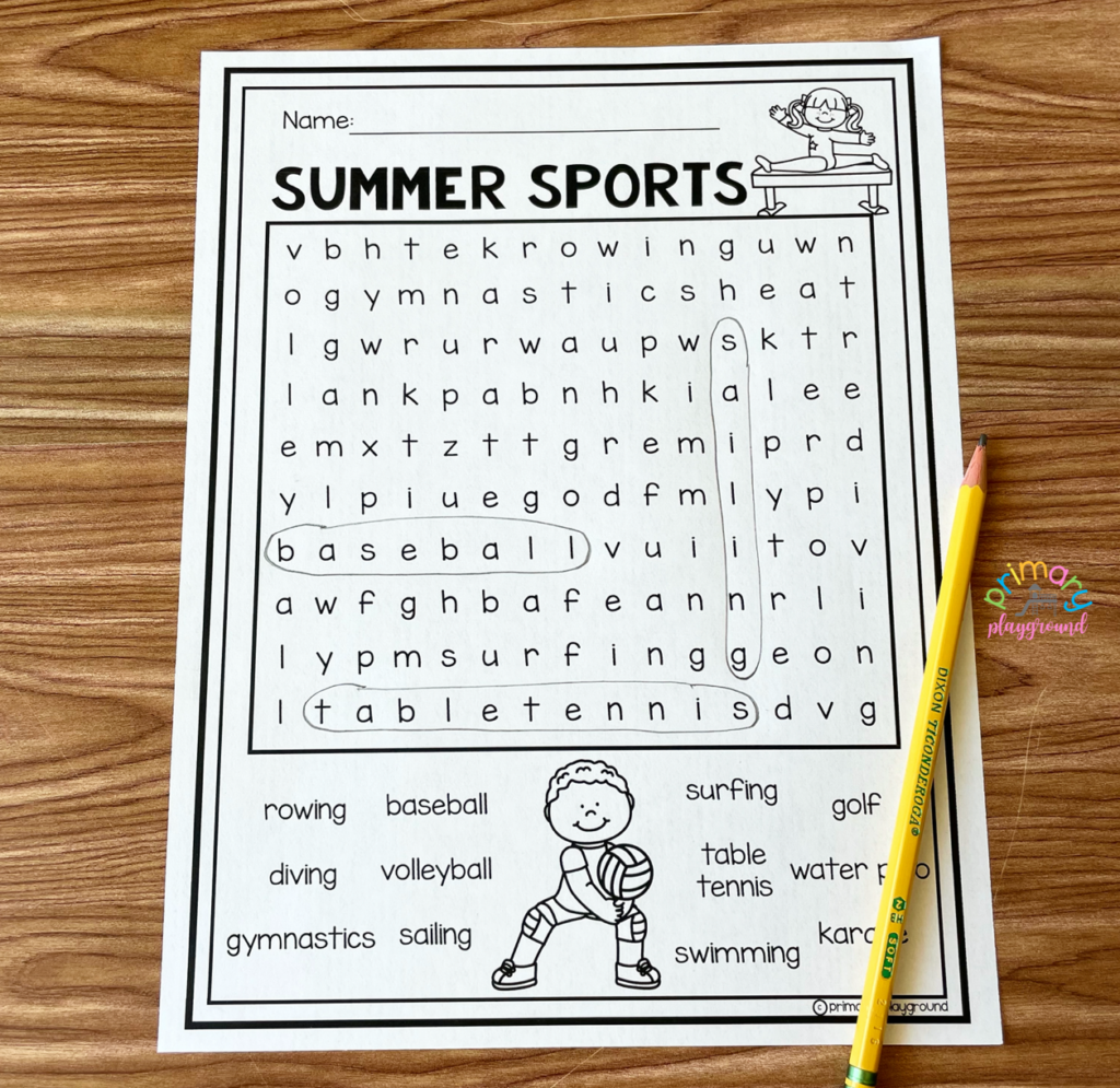 summer sports free word search primary playground
