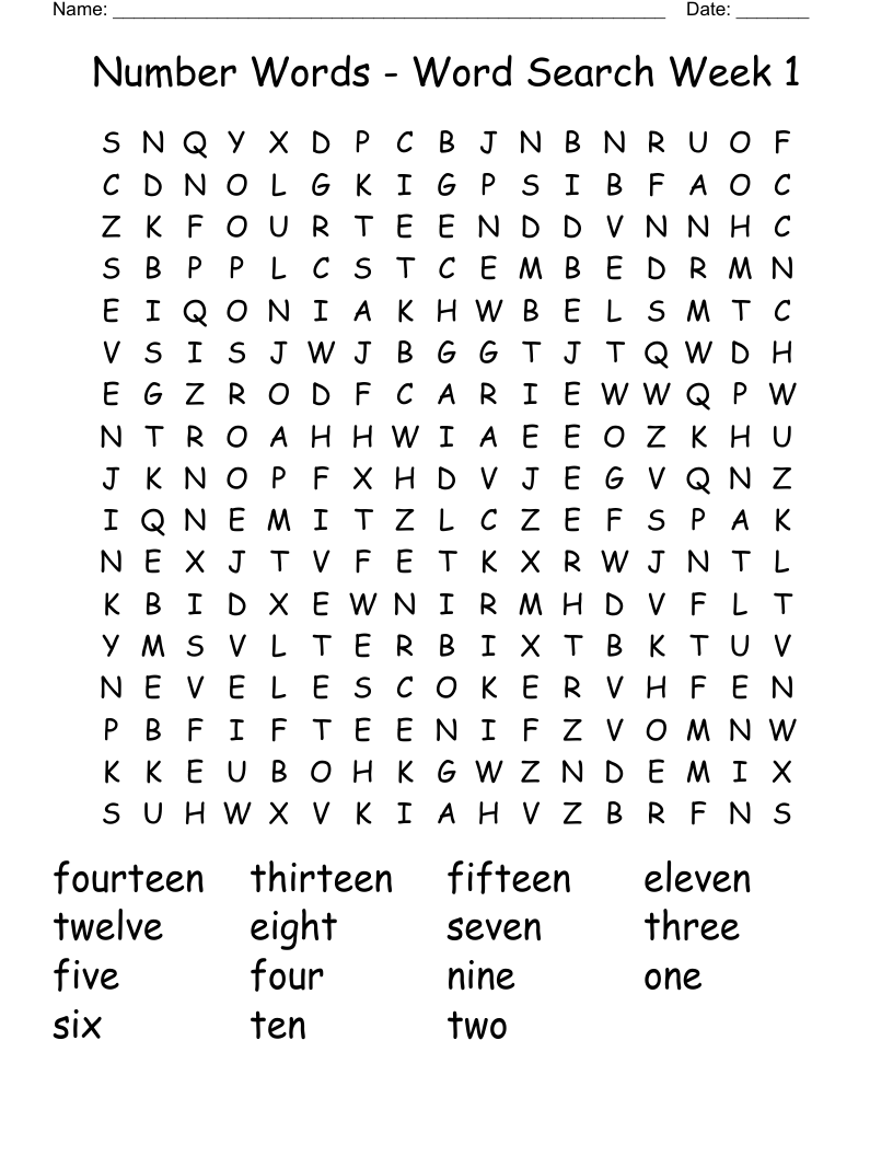 Number Words Word Search Week 1 WordMint