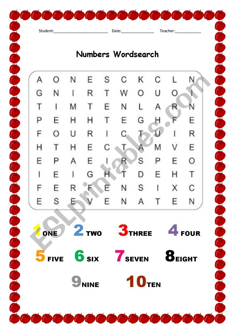 Numbers 1 10 Wordsearch ESL Worksheet By Aline Barros