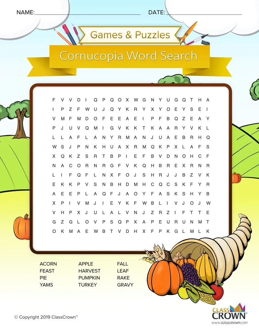 Fall Cornucopia Word Search Puzzles ClassCrown
