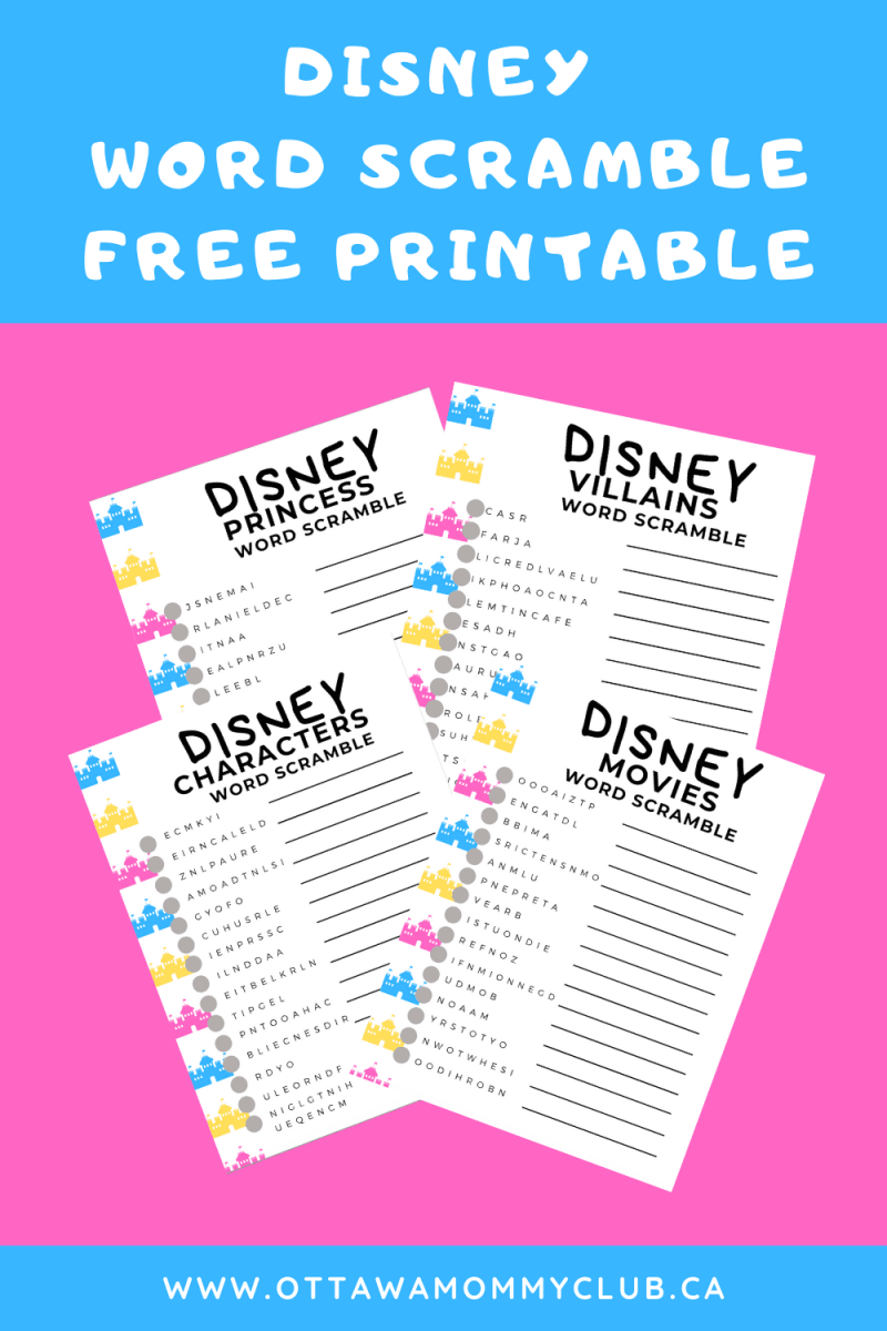 Disney Word Scramble With 8 Page Printable Pack Ottawa Mommy Club
