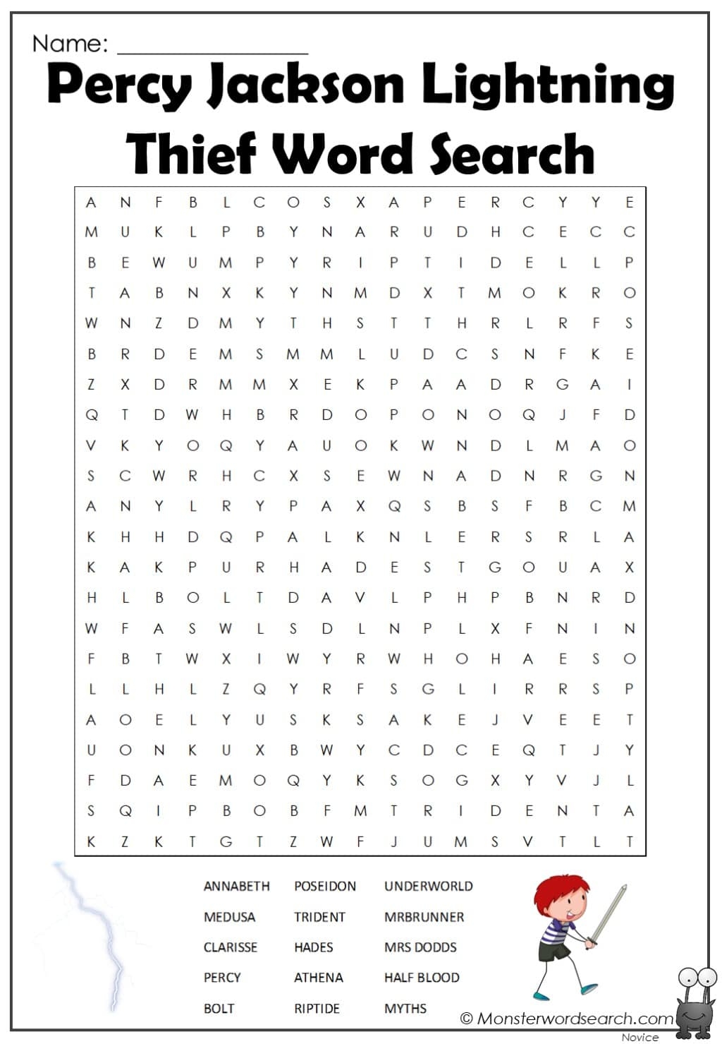 Percy Jackson The Lightning Thief Word Search WordMint