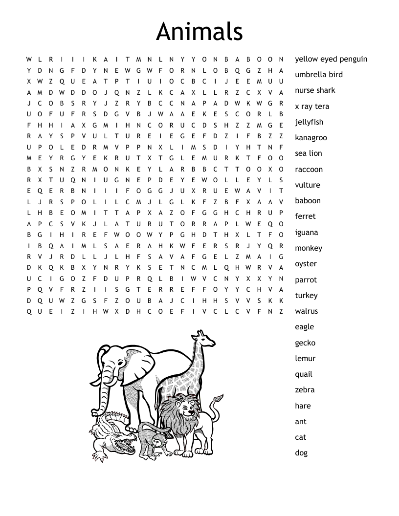 Free Printable Baby Animal Word Search Game Worksheets Library