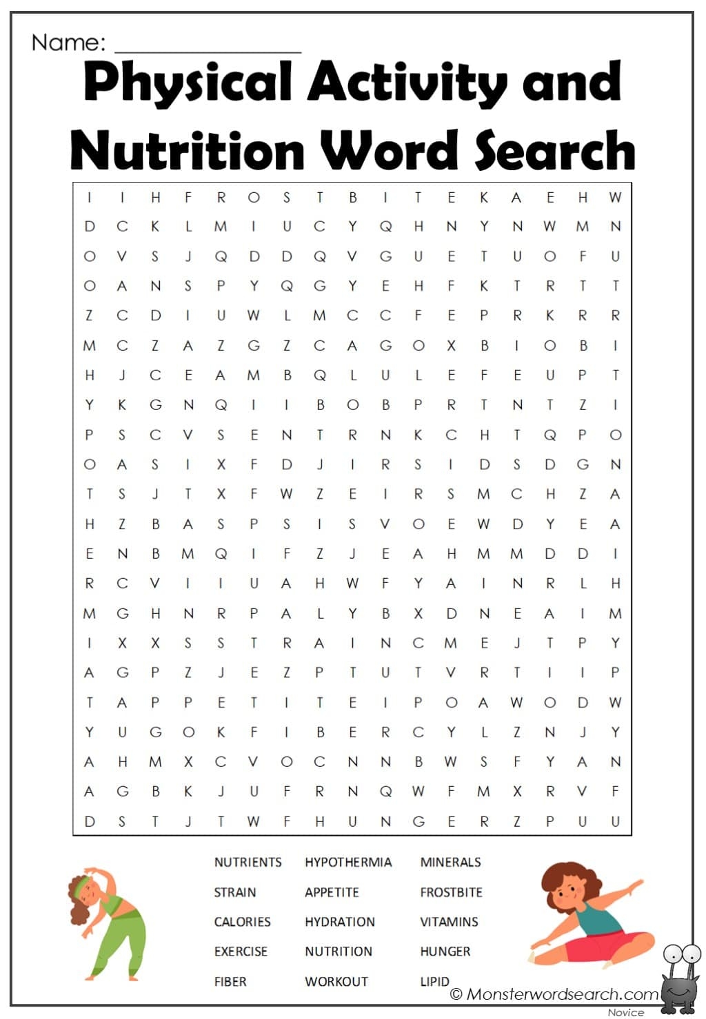physical activity and nutrition word search monster word search