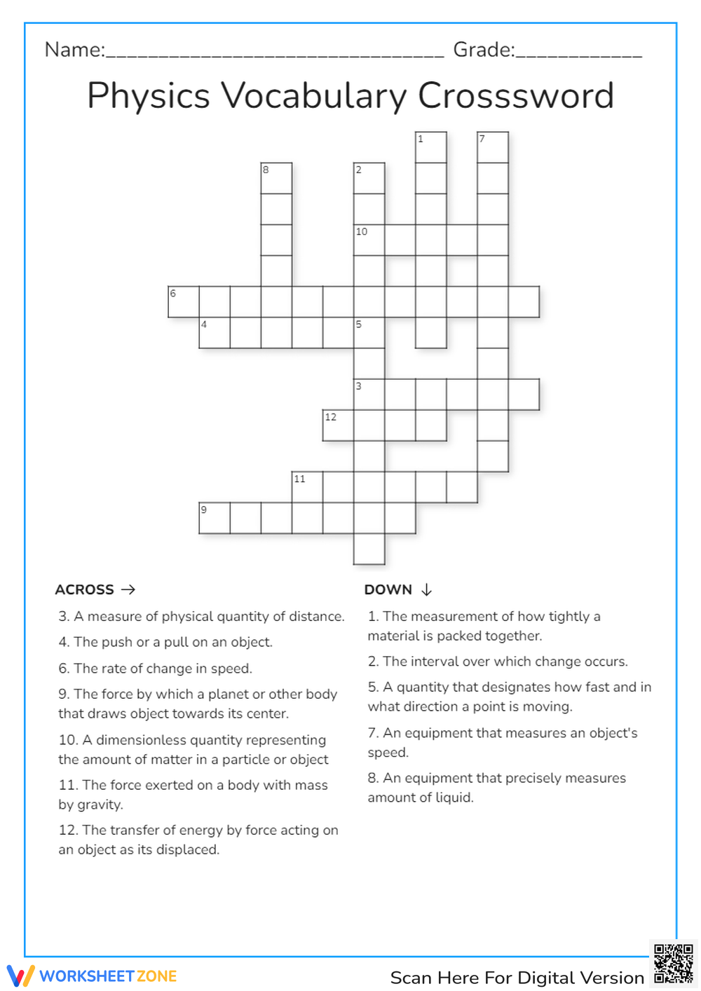 physics vocabulary crossword puzzle worksheet