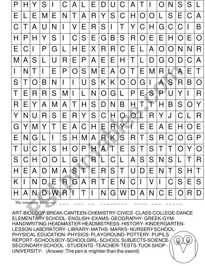 wordsearch school esl worksheet by altievangelia