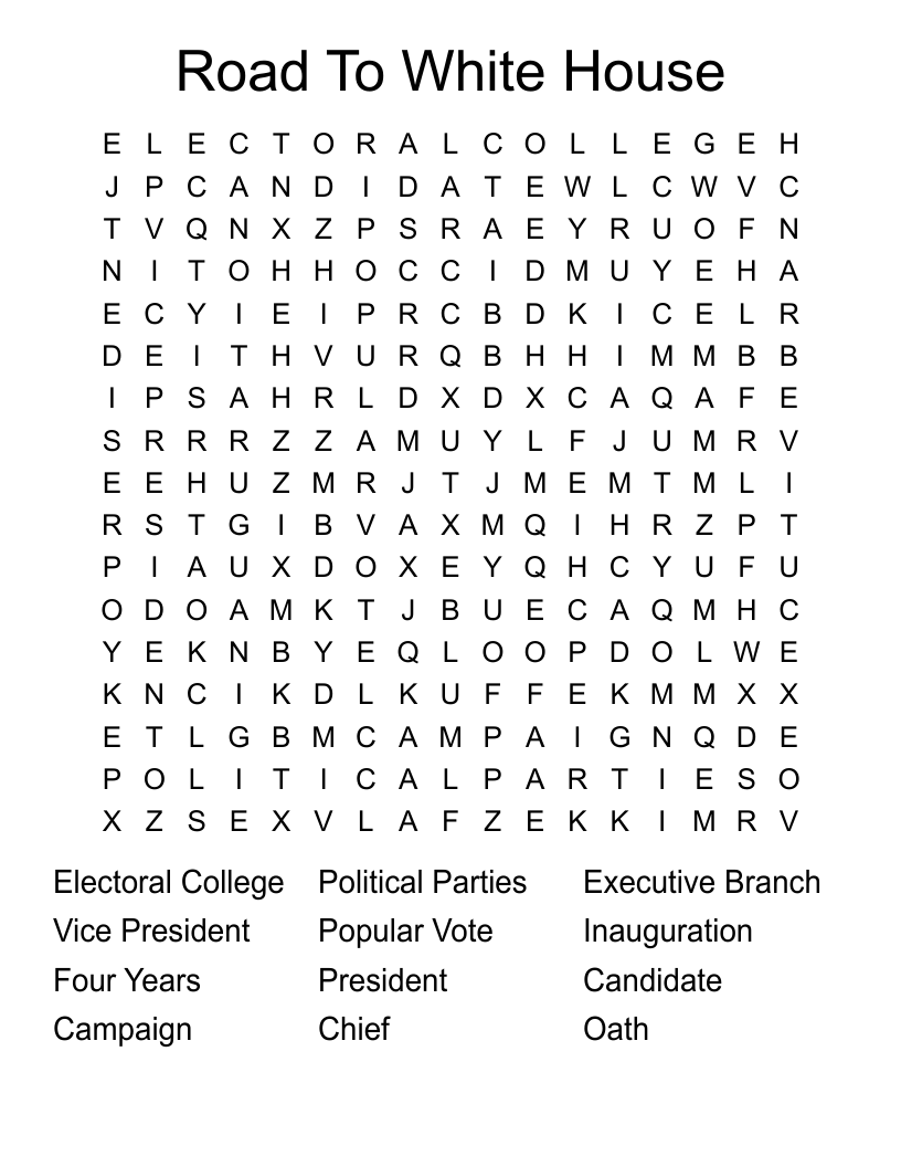 From terms like “democracy” and “president” to more complex phrases like “separation of powers” and “foreign policy,” this word search has it all. Challenge yourself to find all the words hidden within the grid and test your political vocabulary.