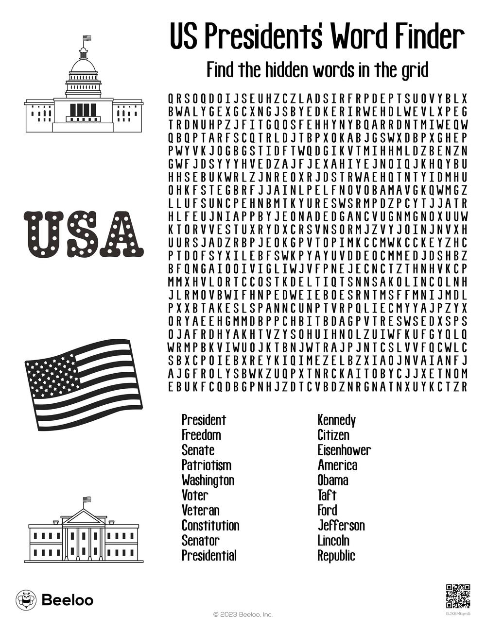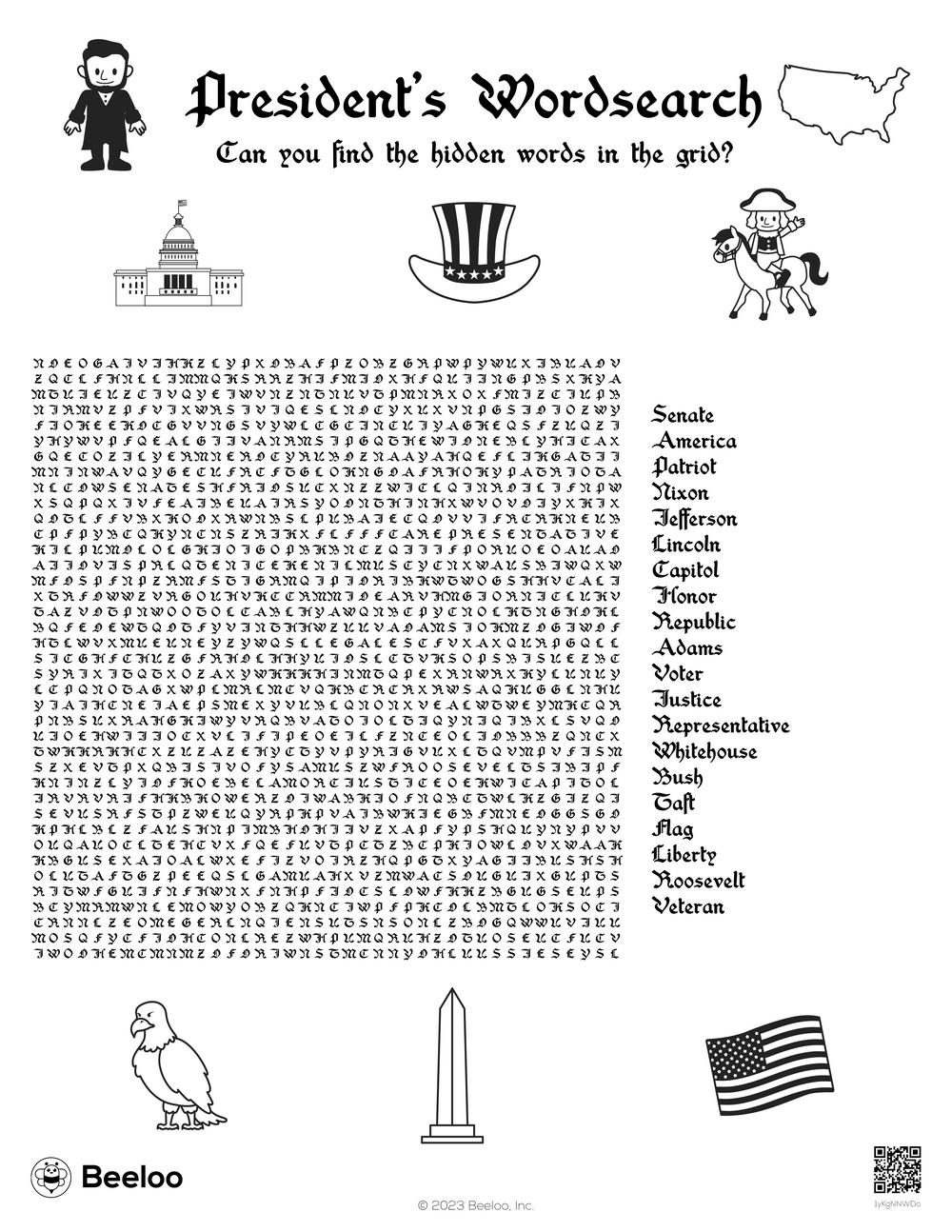 With this printable, your kids can search for the names of famous presidents like George Washington, Abraham Lincoln, and Franklin D. Roosevelt. They’ll have a blast trying to find all the hidden words while learning about these influential figures in American history.