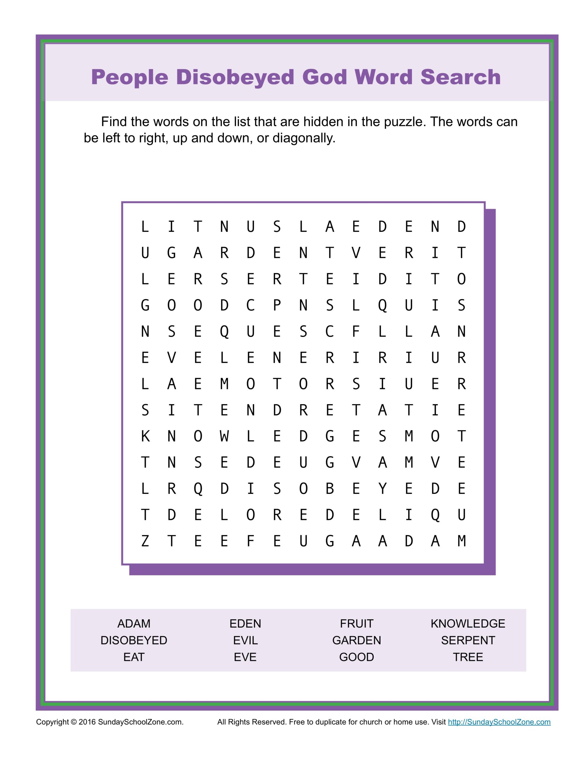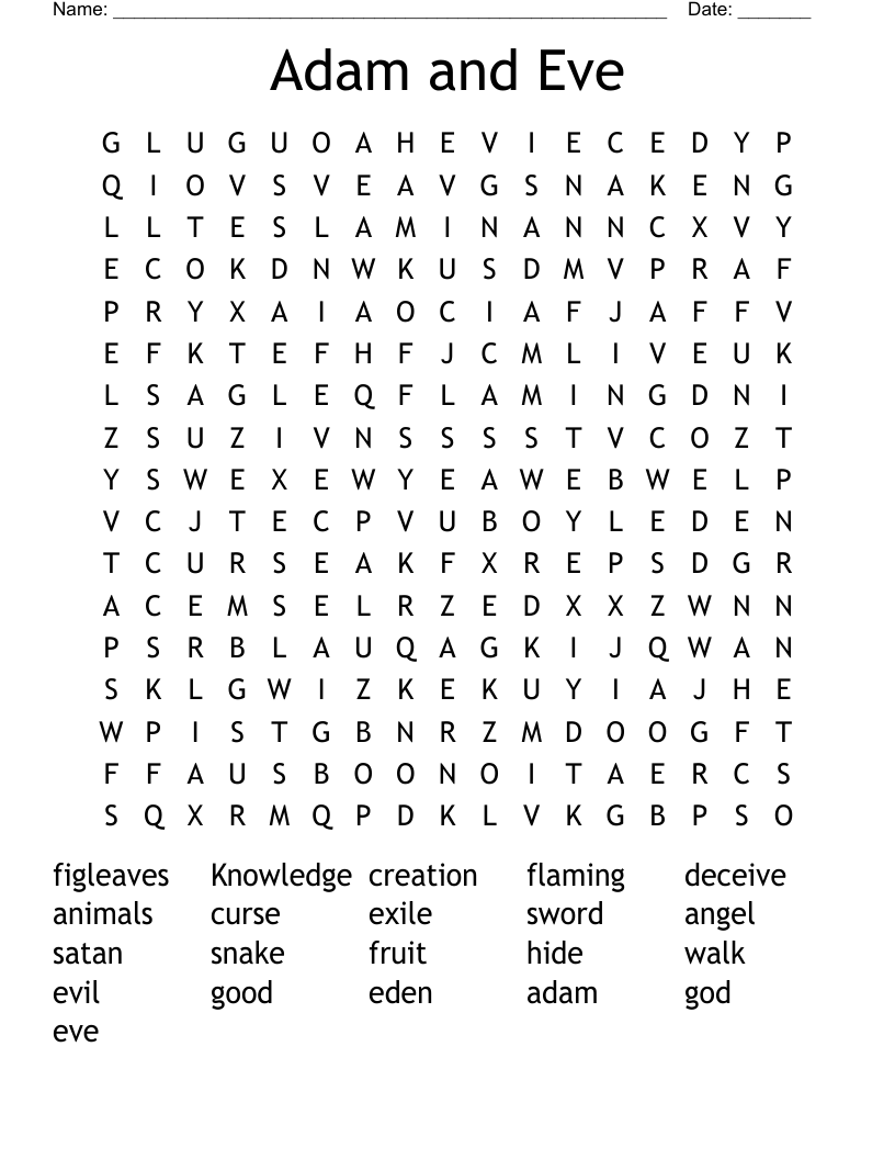Printable Adam And Eve Word Search