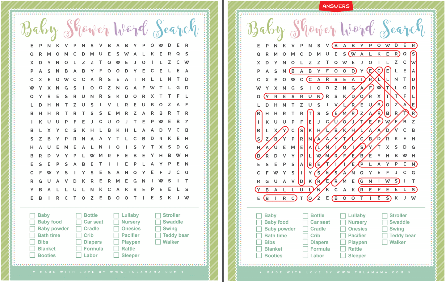 Baby Shower Word Search With Answer Key Tulamama