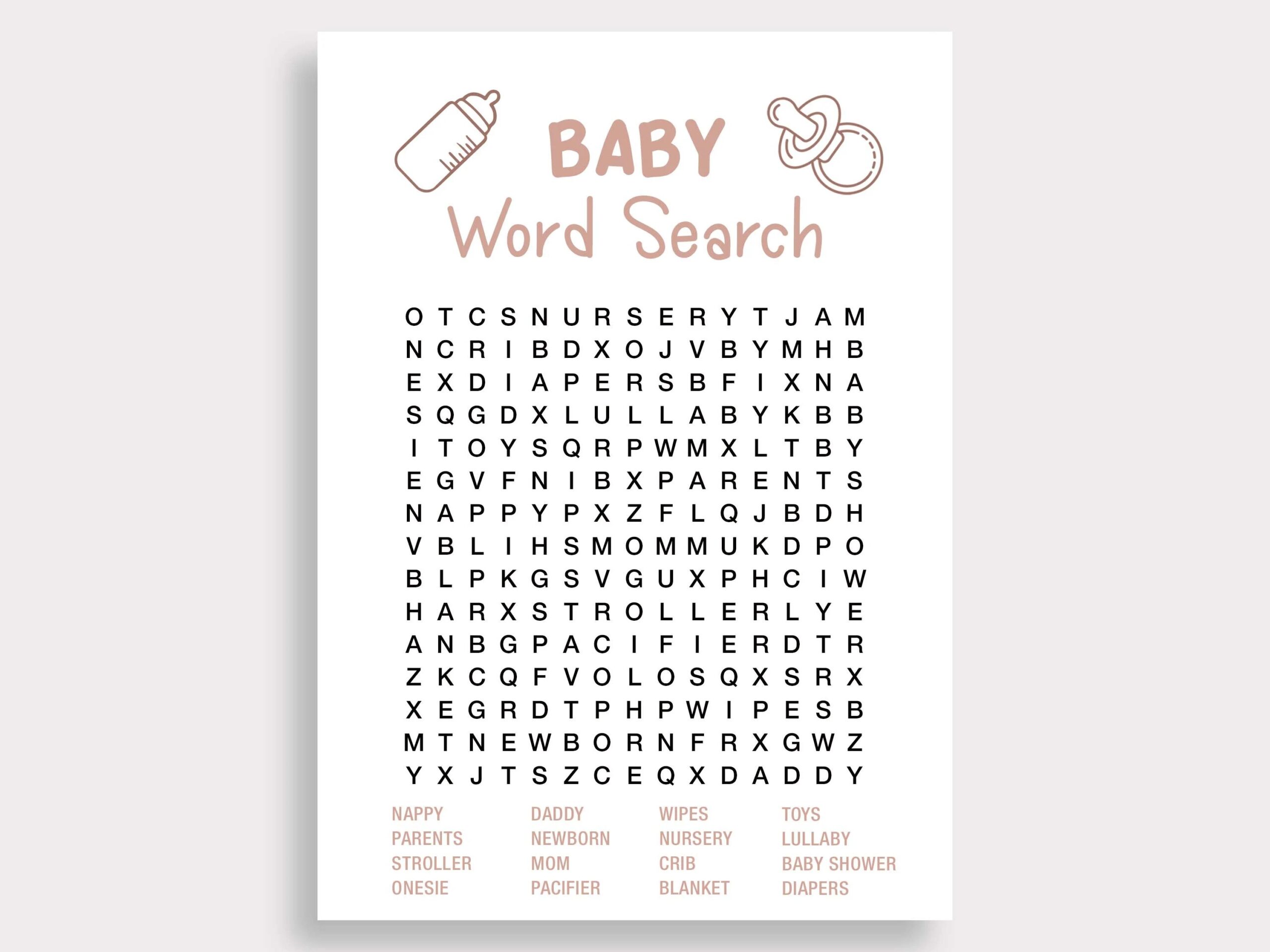 Printable Baby Word Search: A Fun Baby Shower Activity