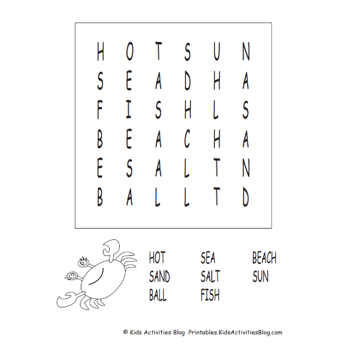 8 Fun Free Printable Beach Word Search Puzzles For Kids Kids Activities Blog