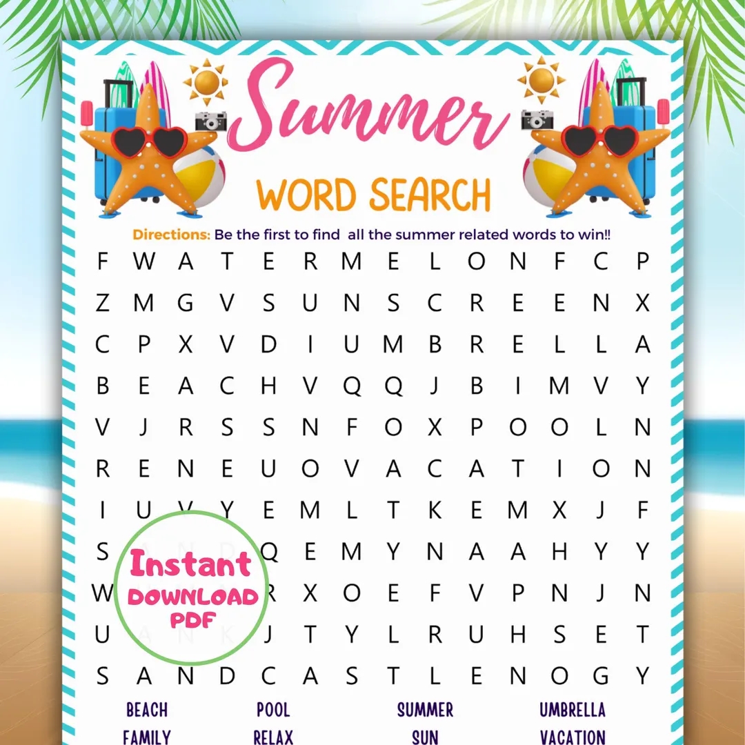Summer Word Search Party Games Summer Activities For Kids And Adults Summer Fun Games Printable Summer Game Day Summertime Word Search Etsy
