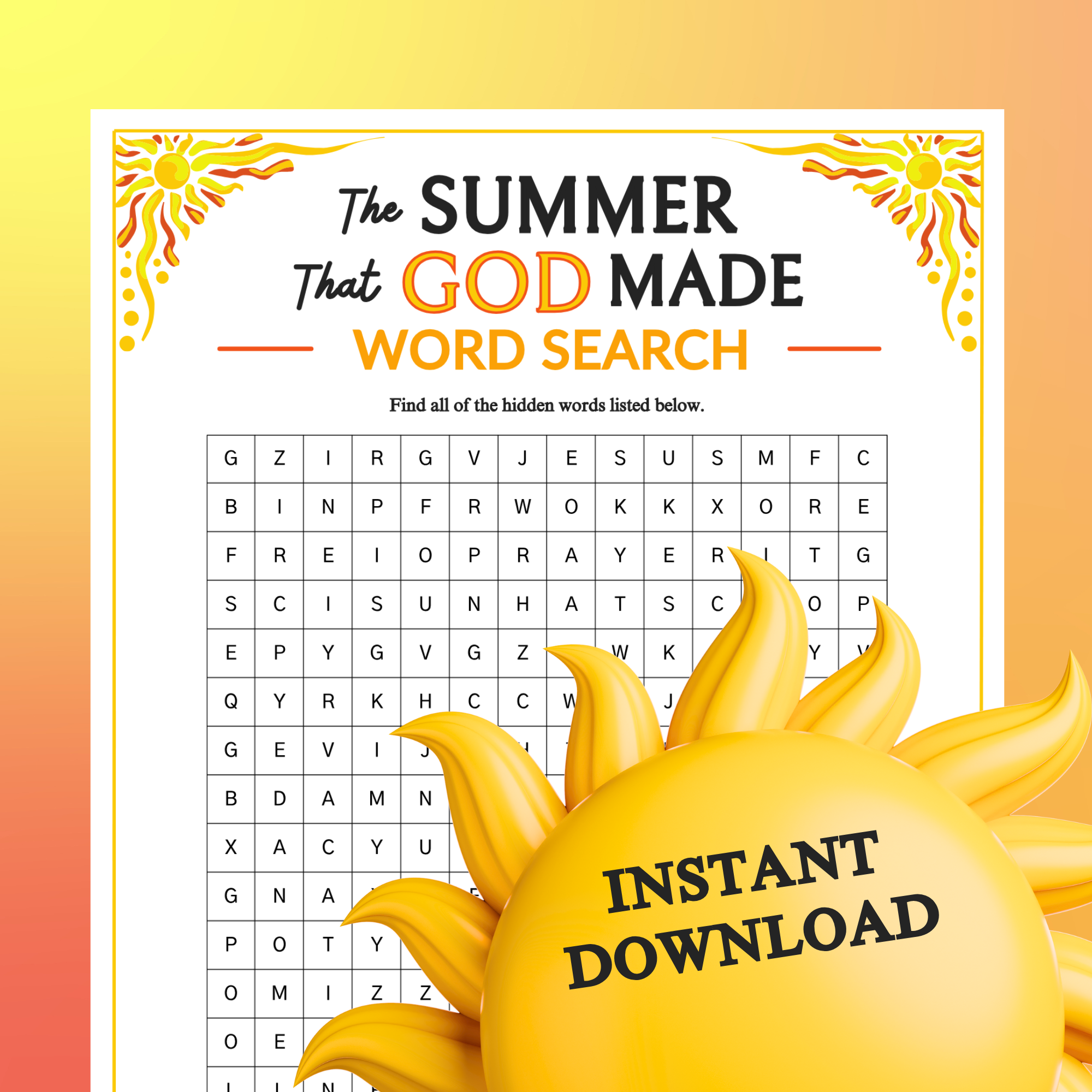 The Summer That God Made Word Search Game Printable For Church Kids Teens Adults Sunday School Ministry Bible Learning Activity Classful