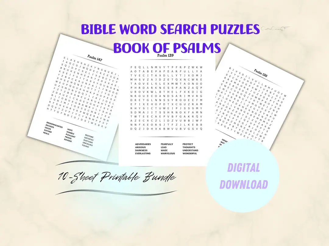 Printable Bible Word Search Puzzles Designed For Teenagers To Adults Book Of Psalms Bible Word Search Find A Word Puzzles Word Search Etsy