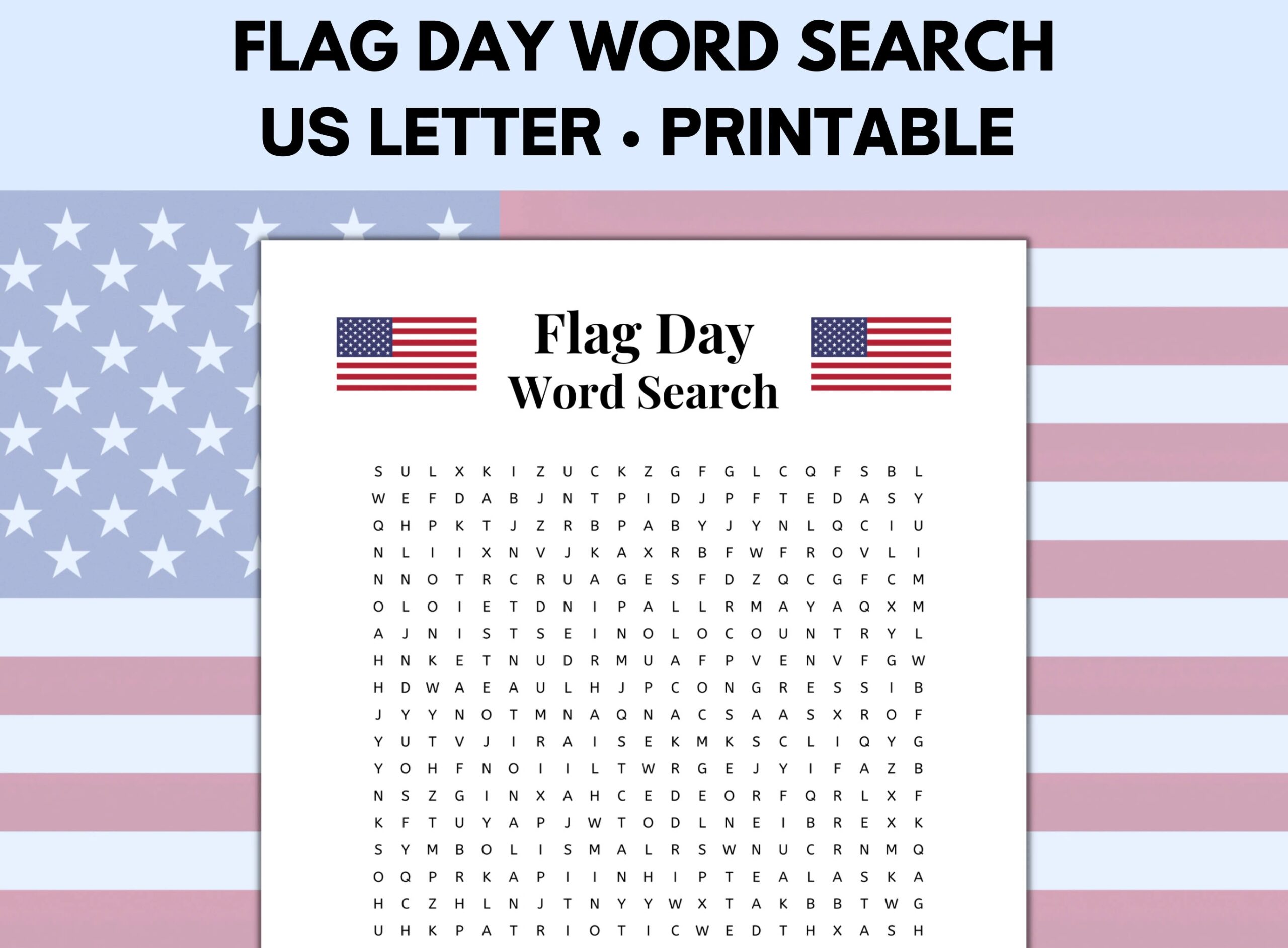 Flag Day Word Search Flag Day Printable Flag Day Activities Word Search Printable Patriotic Games Etsy
