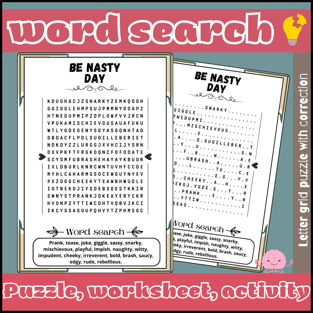 Be Nasty Day Word Search Puzzle Activities May Worksheets Made By Teachers