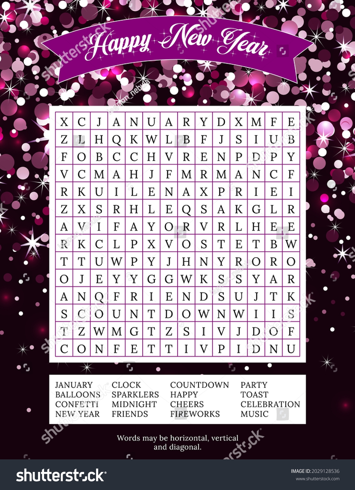 Happy New Year Word Search Puzzle16 Stock Vector Royalty Free 2029128536 Shutterstock