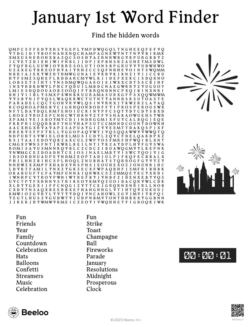 January 1st Word Finder Beeloo Printable Crafts And Activities For Kids