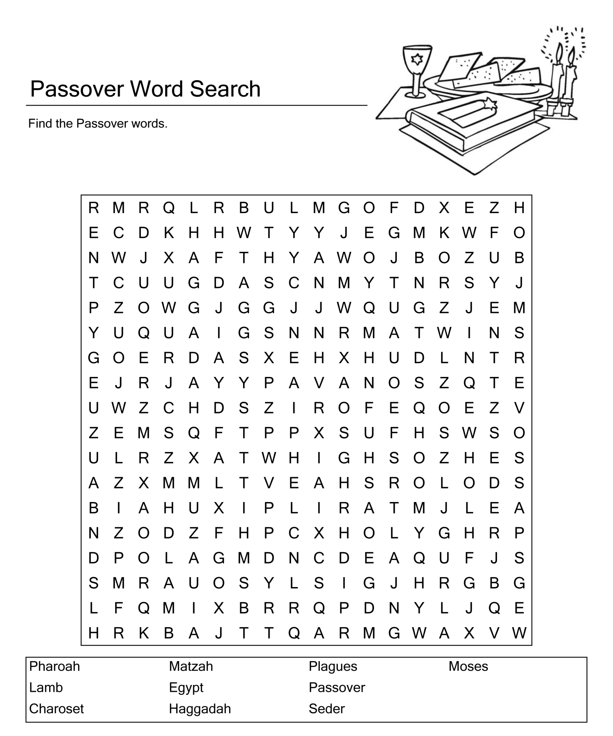This word search puzzle is a great way to keep the kids entertained while also reinforcing important Passover vocabulary. It’s easy to print out and can be enjoyed by all ages, making it a perfect addition to any Passover celebration.