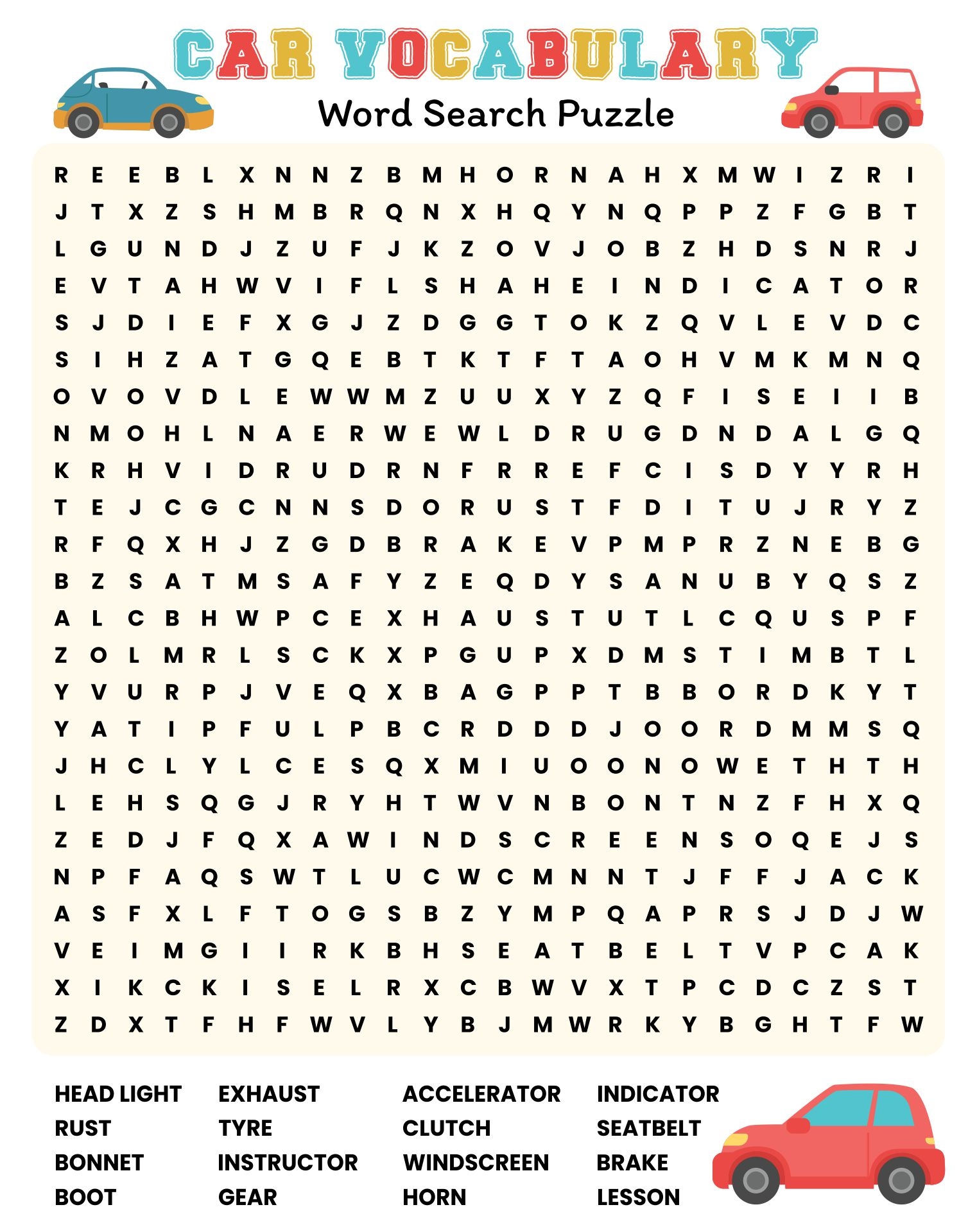 So why not give printable word search puzzles a try? They’re a fun and engaging way to test your car knowledge while sharpening your mind. You can even challenge your friends or family members to see who can complete the puzzle the fastest. It’s a great way to bond and have some friendly competition.