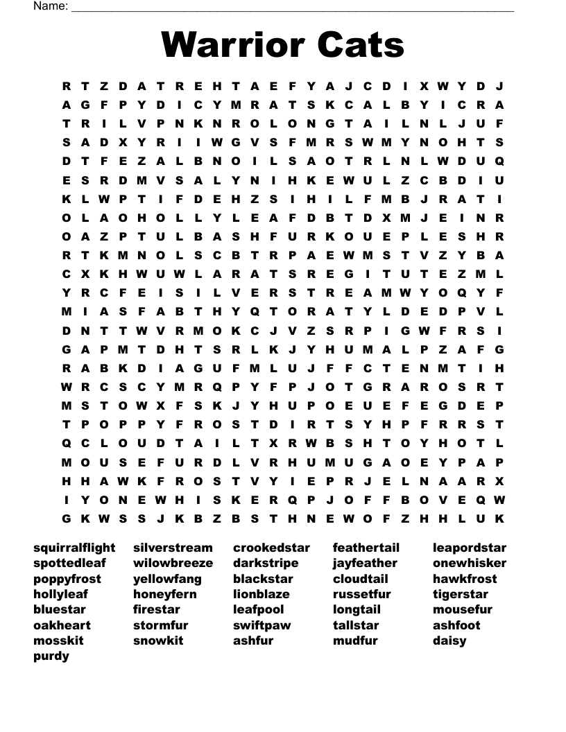 Warrior Cats Word Search WordMint